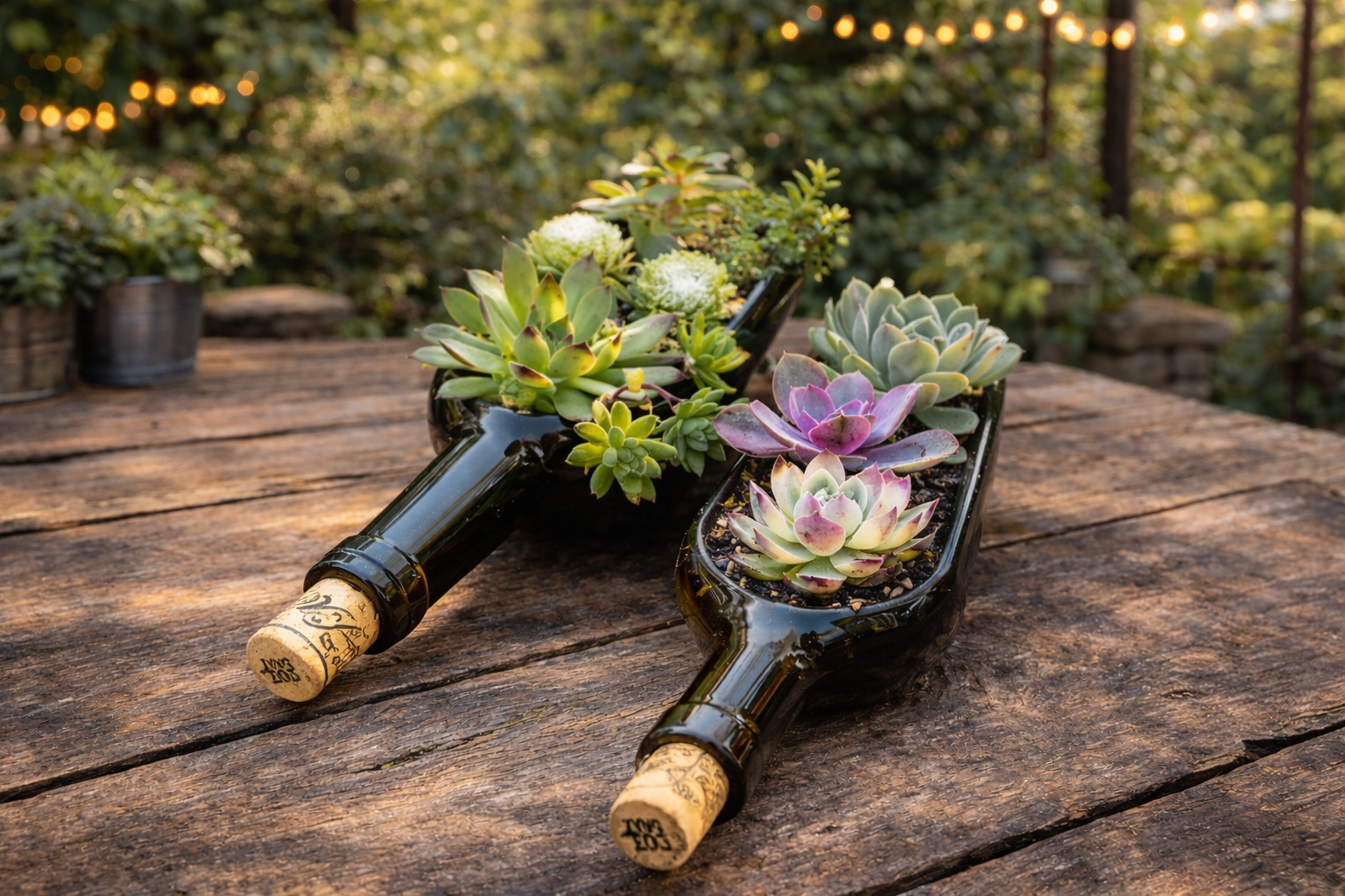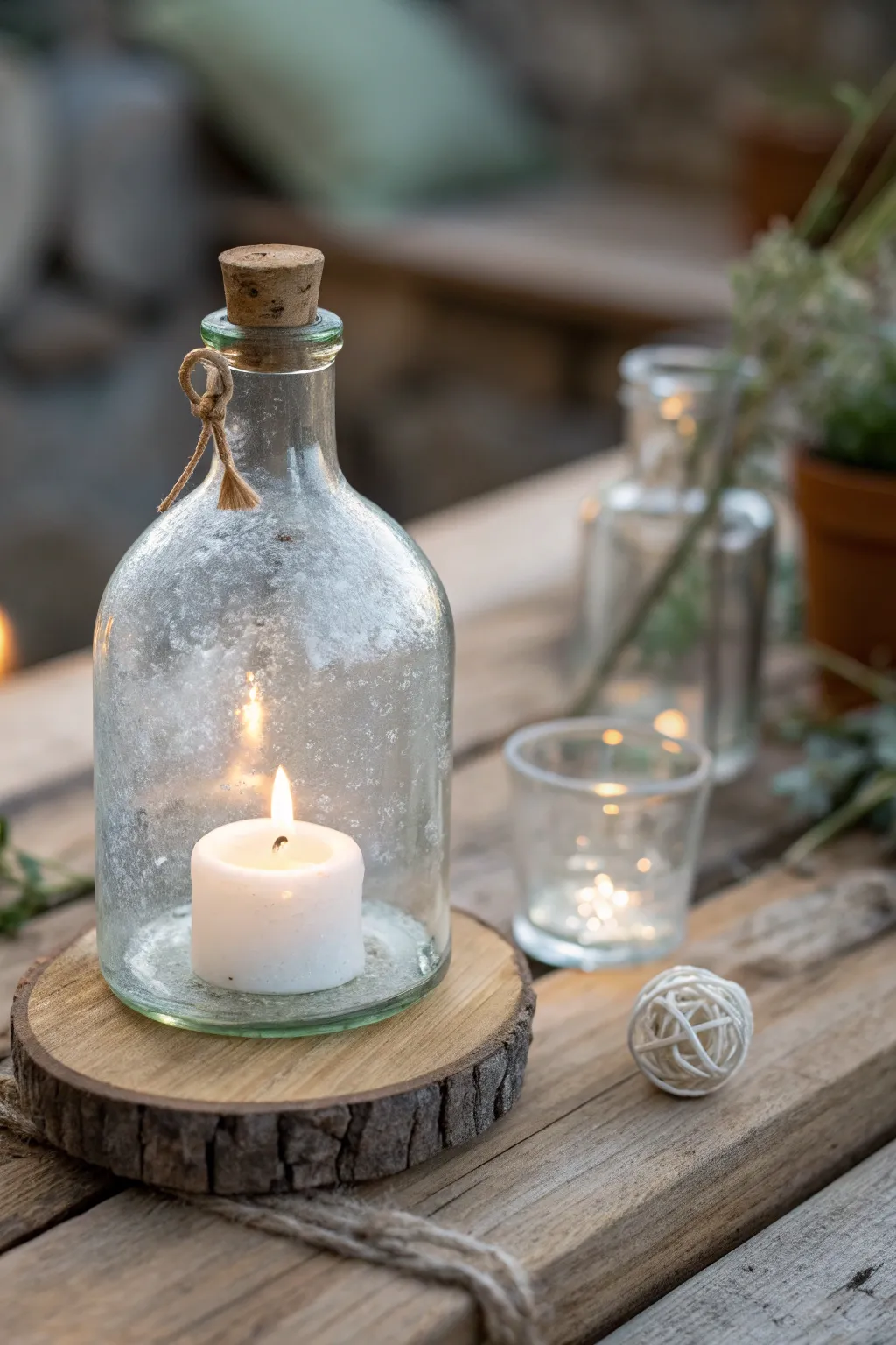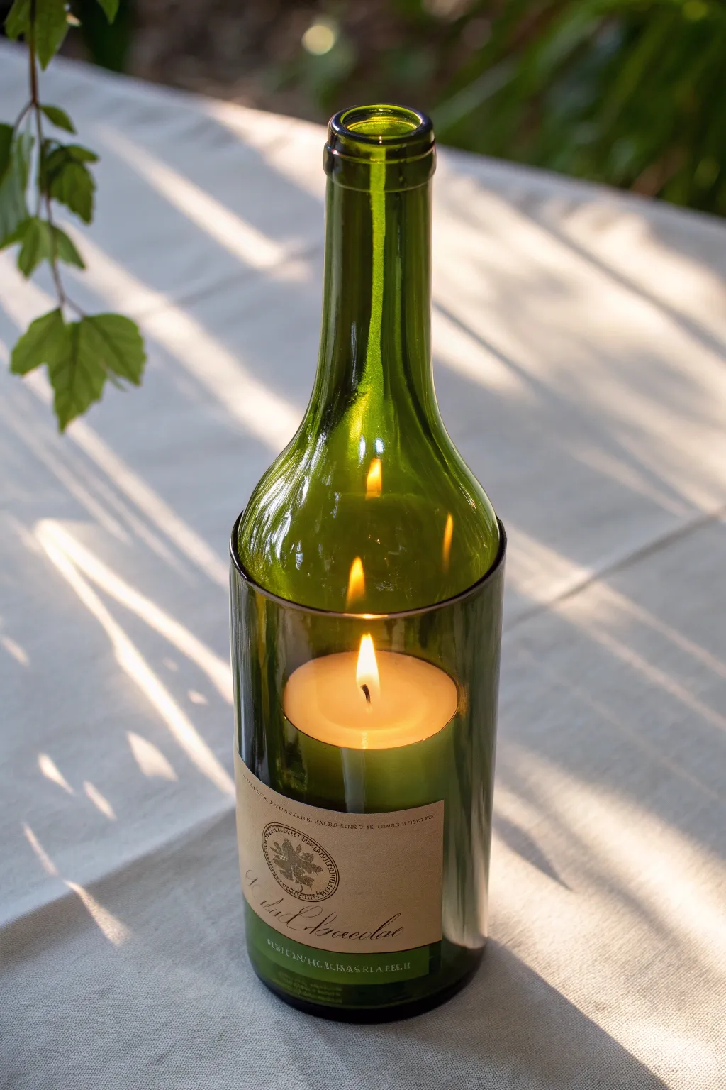 Signature Lighting: Cut the bottoms off larger bottles to create stunning pendant lights or hurricane lamps for outdoor patios.